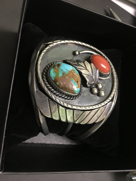 Coral and Turquoise Vintage Cuff Bracelet